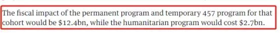 再加上457转PR再转带来的经济效应,技术移民为澳洲将带来$124亿的收入!而与此相反的是,人道主义救助项目则要花掉政府27亿澳元。