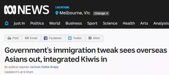 为什么这么说呢?因为,在达顿的“削减移民”计划中,189等技术移民签证种类里还被引入了新西兰分支,这也就相当于又让新西兰本有的移民配额占据了可能会给亚洲移民的份额。